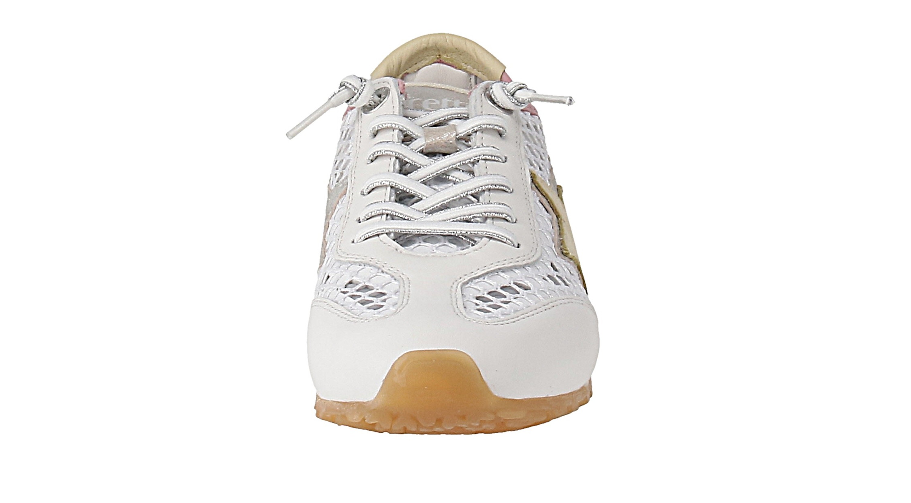 Dieser stylische Sneaker von Cetti setzt auf einen lebendigen Materialmix und eine angesagte Farbkombination. Glatt- und Rauleder treffen auf textile Mesh-Einsätze und sorgen für angenehmes Fußklima. Die elastische Schnürung ermöglicht ein schnelles An- und Ausziehen und passt sich flexibel an. Innen bietet das herausnehmbare Fußbett eine bequeme Basis für den Alltag.