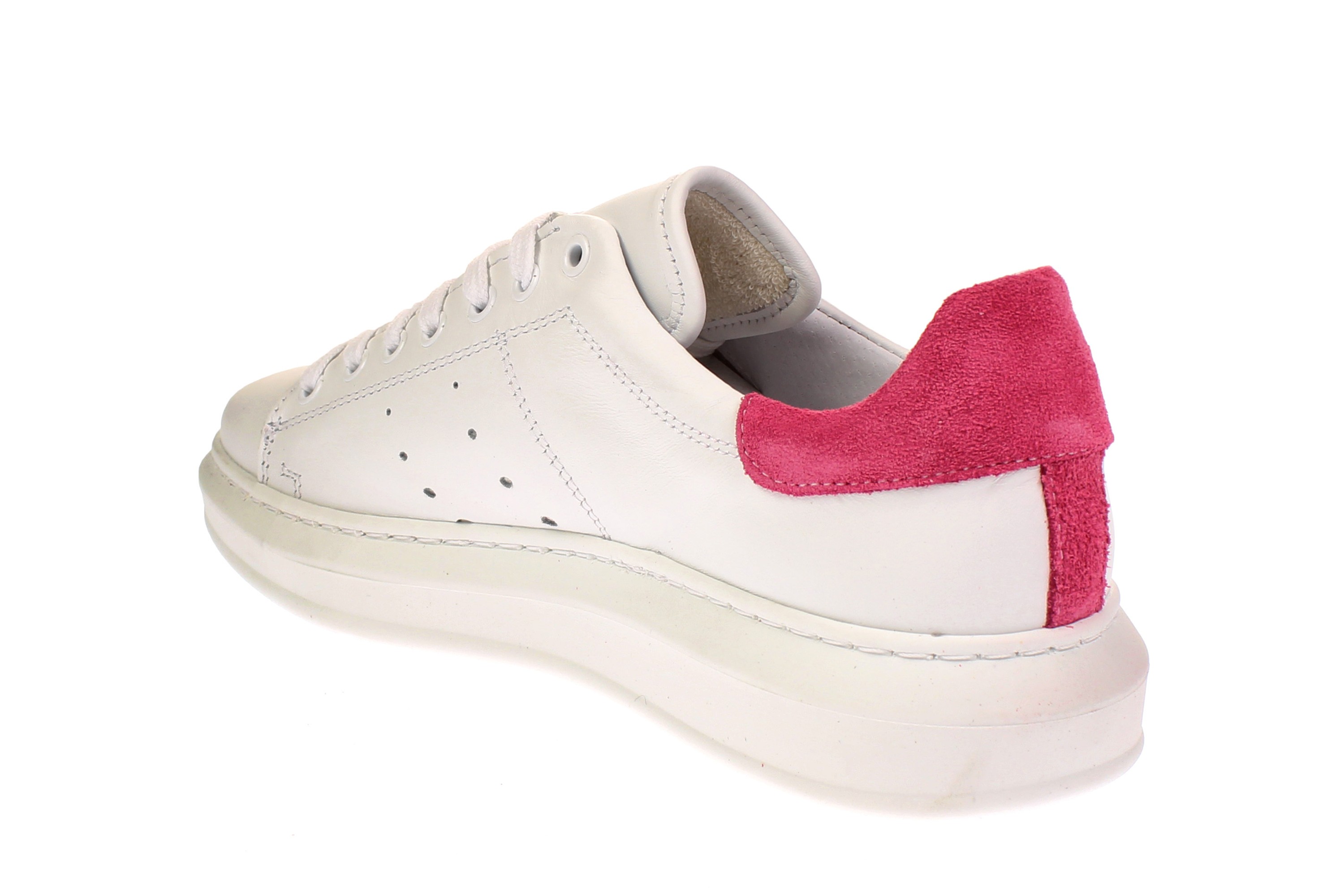 Dieser sportliche Damensneaker aus Echtleder ist mit erhöhter Sohle und Details im angesagten Fuchsia, ein Highlight für jedes Outfit. Das Innenfutter und die Decksohle sind ebenfalls aus echtem Leder. Die lange Schnürung ermöglicht einen leichten Einstieg und optimale Anpassung an den Fuß.