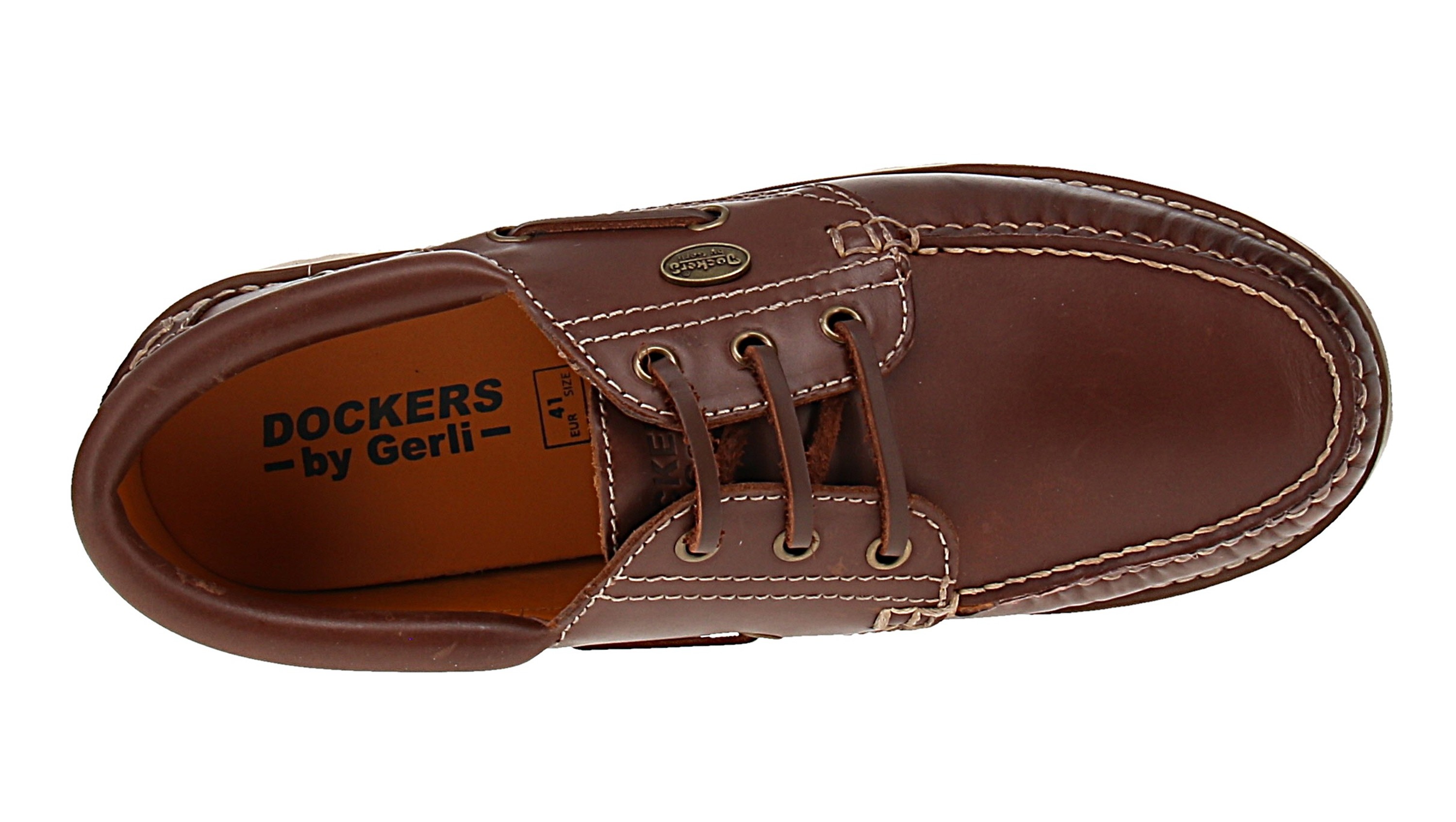 Diese Bootsschuhe von Dockers by Gerli verbinden klassische Elemente mit funktionaler Ausstattung. Das Obermaterial aus braunem Leder ist strapazierfähig. Die Schnürung ermöglicht eine präzise Passung, während die weiche Innensohle zusätzlichen Komfort bietet. Abgerundet wird dieses Modell durch eine Gummisohle, die flexibel ist und einen sicheren Halt gewährleistet.