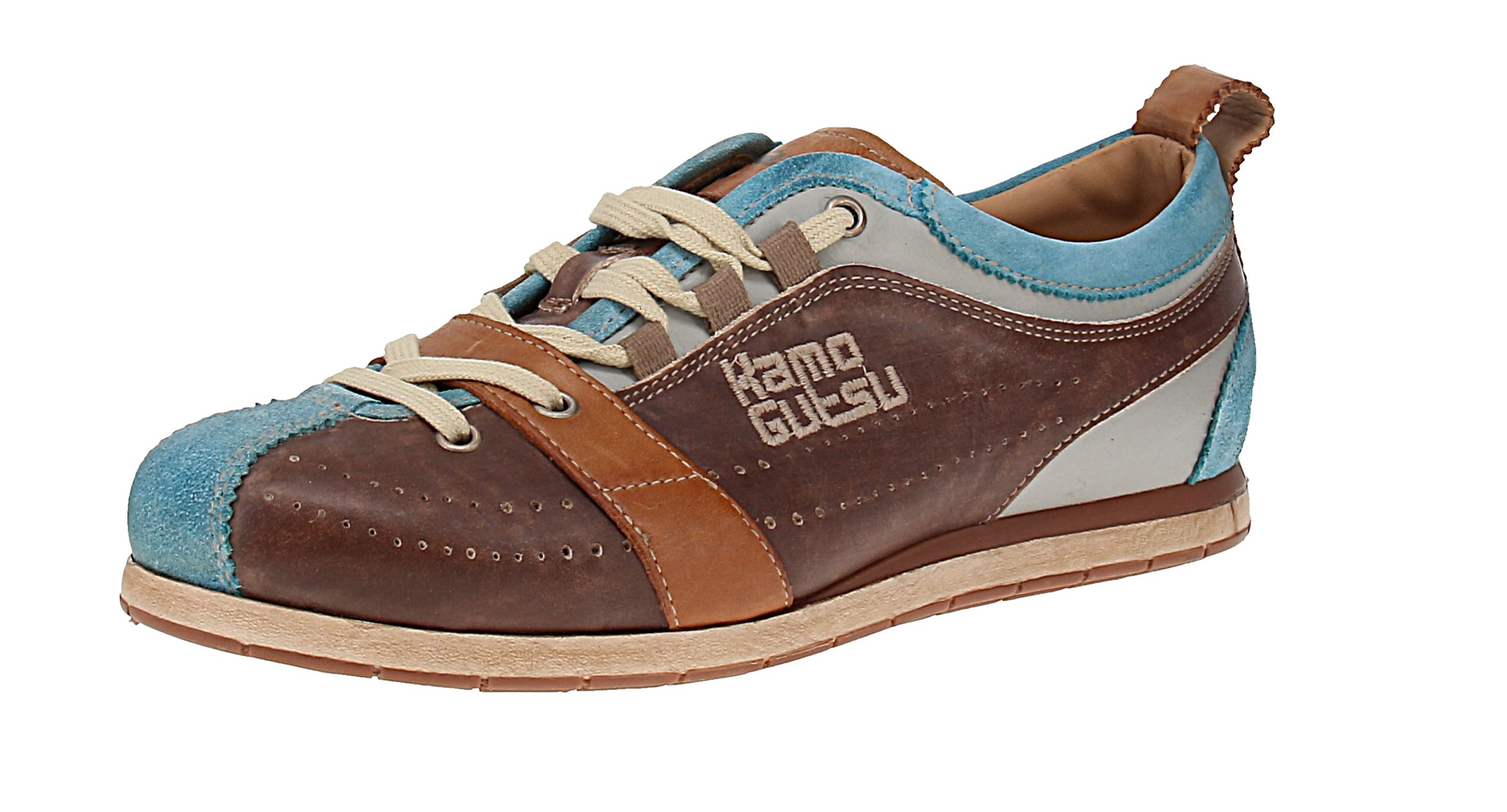 Das hochwertige Obermaterial aus Leder in optimal abgestimmter Farbkombination verleiht diesem in Italien hergestelltem Sneaker von Kamo-Gutsu einen ganz besonderen Look, der jedes Outfit perfekt ergänzt. Die Innensohle dieses handgefertigten Schuhs von Kamo-Gutsu ist herausnehmbar und kann ganz bequem gegen eigene Einlagen ausgetauscht werden.