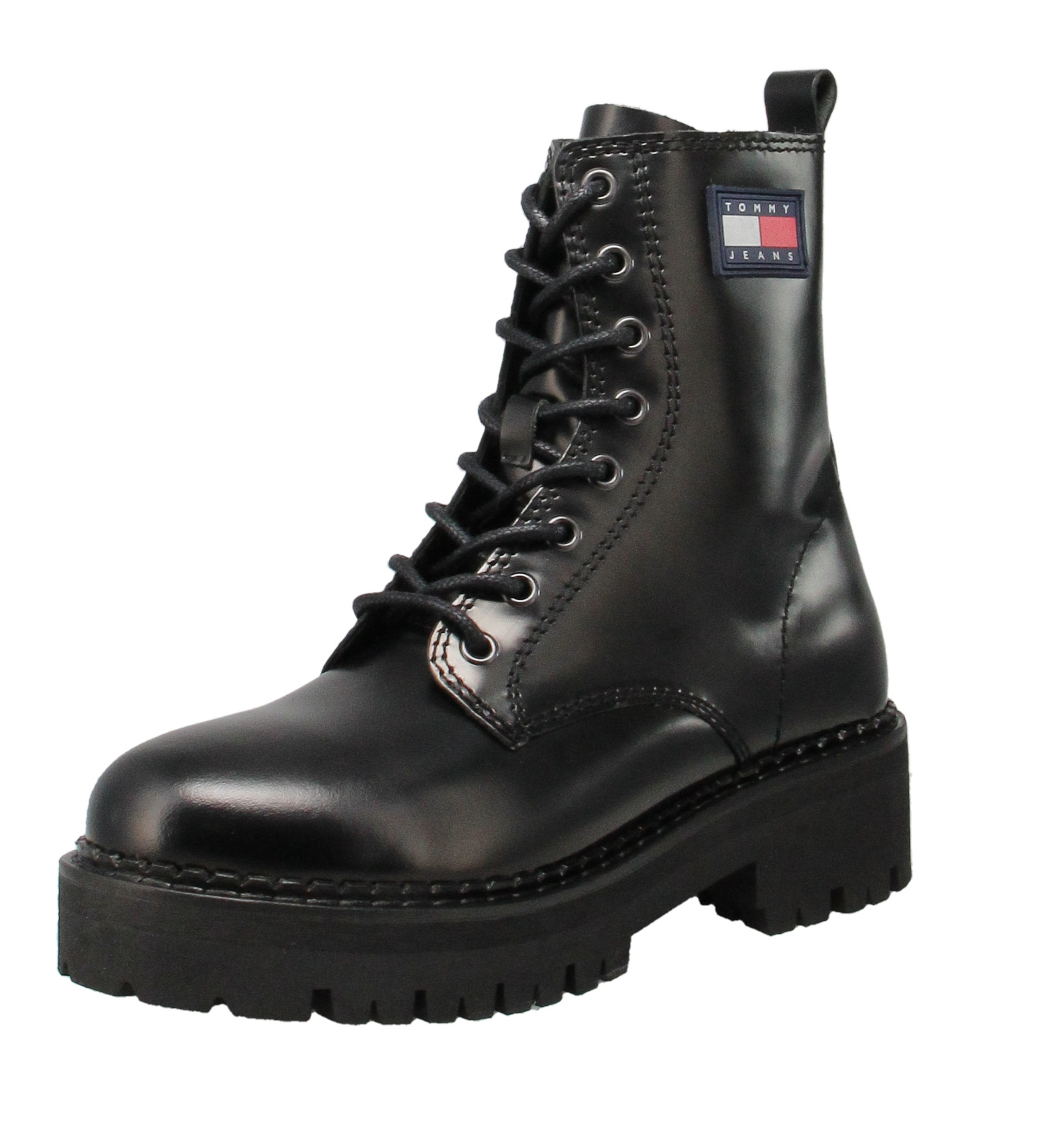 Dieser 8-Loch-Boot der Marke Tommy Hilfiger ist durch sein minimalistisches Design in schlichtem Schwarz und seine robuste Retro-Sohle ein stylischer Alltagsbegleiter. Die rutschhemmende Retro-Laufsohle aus Gummi sorgt für guten Halt auf herbstlichem und winterlichem Untergrund. Mithilfe der Zuglasche lässt sich der Boot ganz einfach und bequem anziehen. Das Tommy Hilfiger-Logo am seitlichen Schaft verleiht dem Boot einen edlen farblichen Schliff.